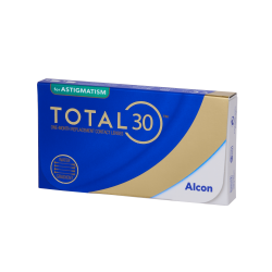 Торические ежемесячные контактные линзы TOTAL30 for Astigmatism от Alcon продаются в удобной упаковке по 3 блистера.