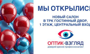 Мы рады объявить об открытии нового салона "Оптик-взгляд" в ТРК "Гостиный двор"!