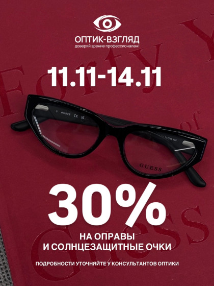 С 11.11.25-14.11.25 в нашем салоне невероятное предложение - скидка 30% на все оправы и солнцезащитные очки!